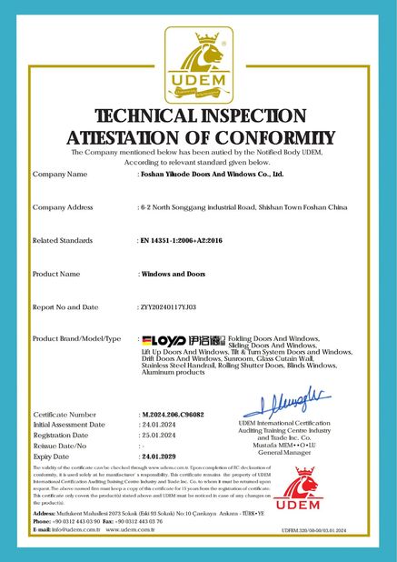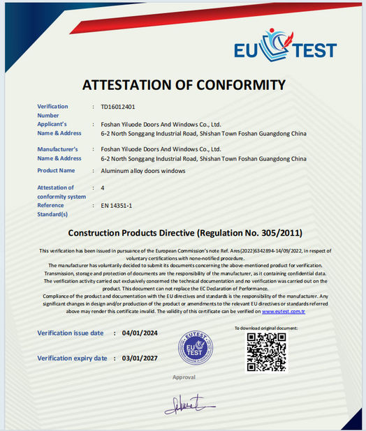 • 中国 Foshan Yiluode Doors And Windows Co., Ltd. 認証